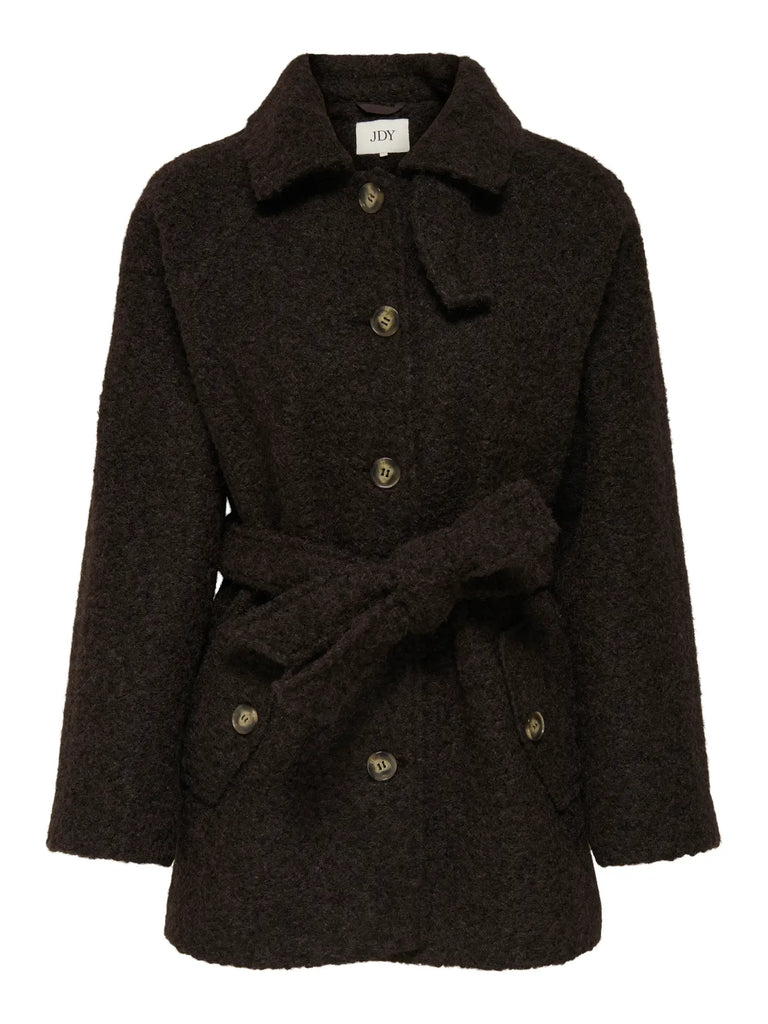 JDY Boucle Coat With Belt in Brown