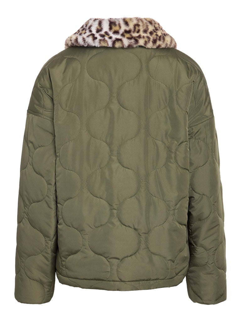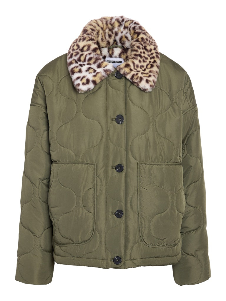 NOISY MAY Quilted Jacket With Leopard Detail in Green