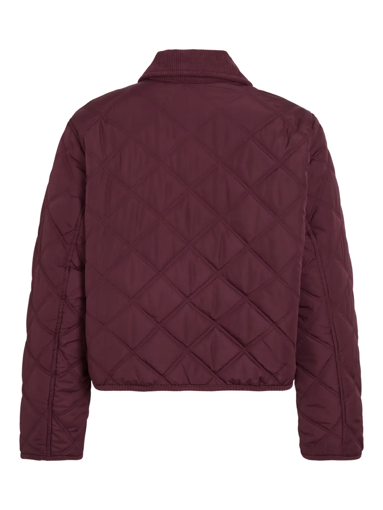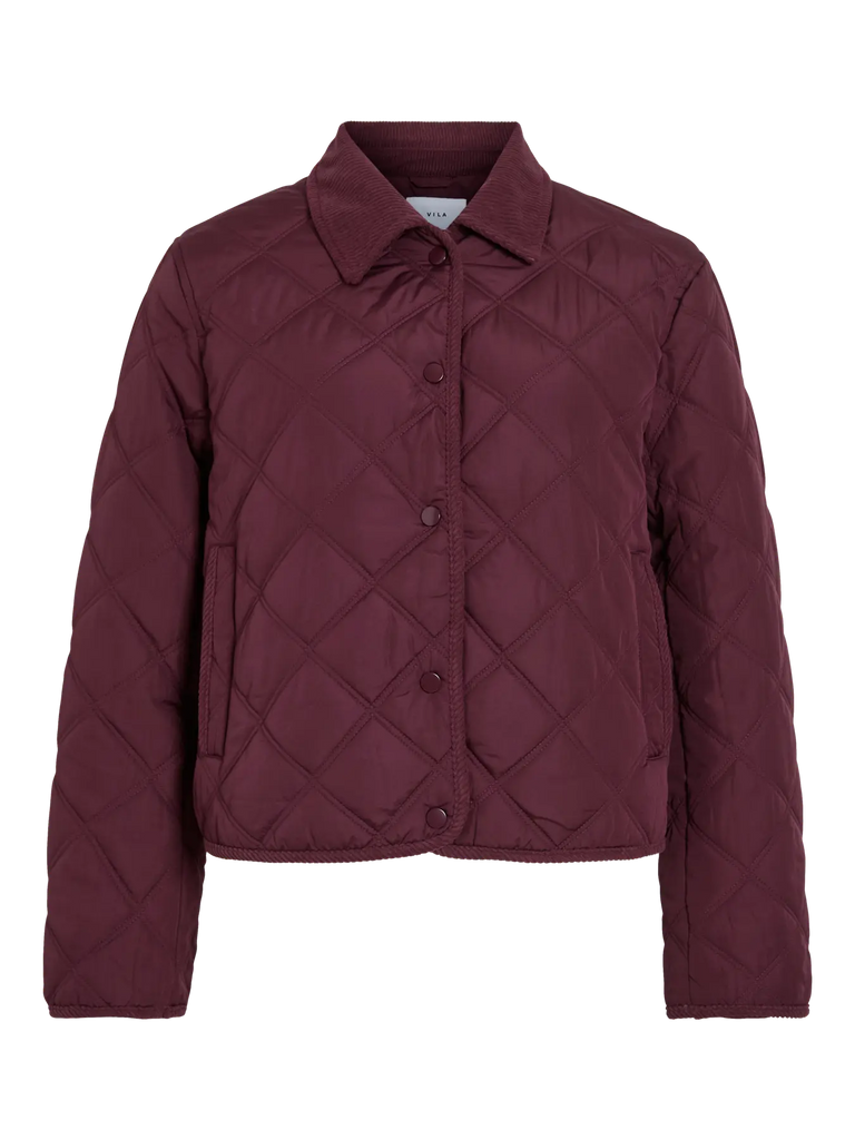 VILA Short Corduroy Detail Quilted Jacket in Burgundy