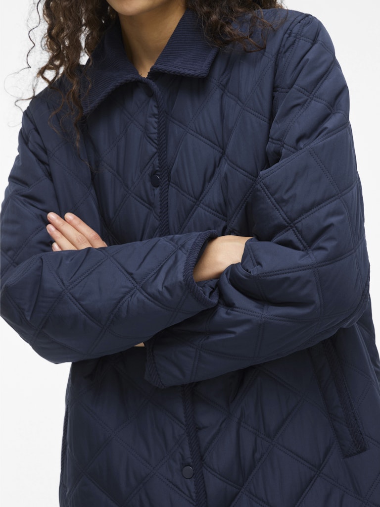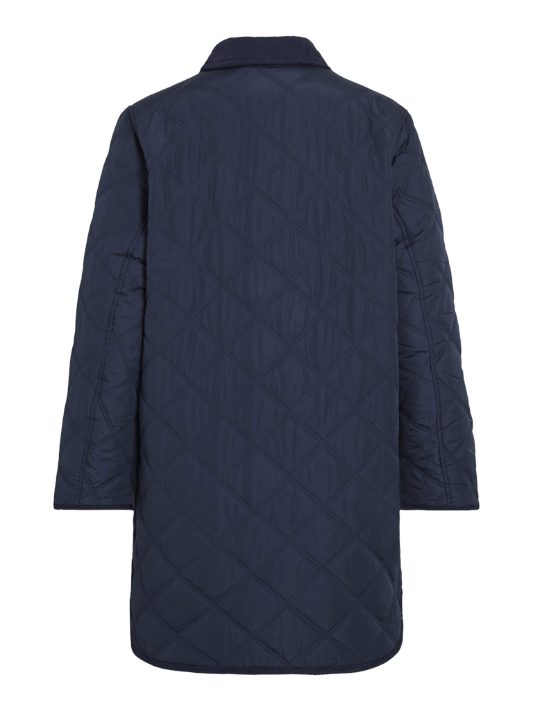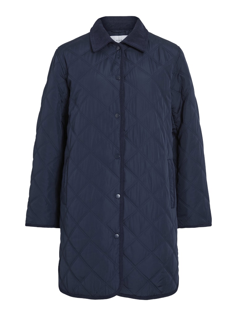 VILA Long Corduroy Detail Quilted Jacket in Navy