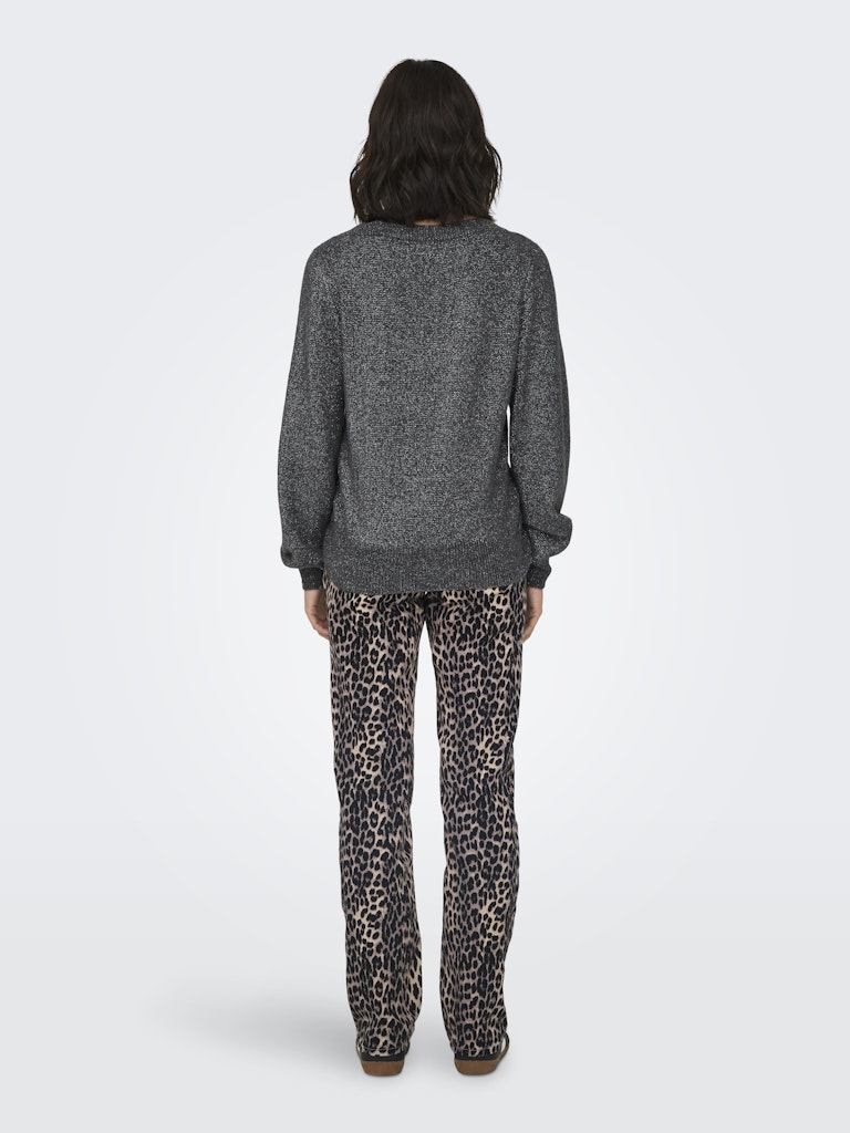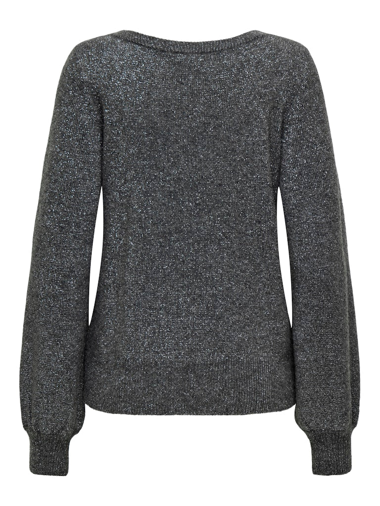 JDY Glitter Detail Boat Neck Knit Jumper in Dark Grey