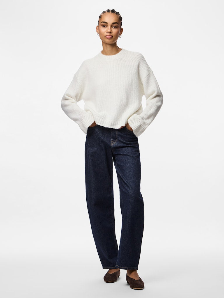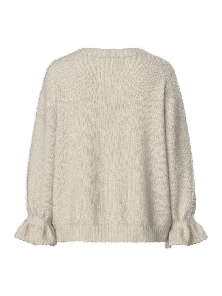 PIECES Frilled Cuff Knit Jumper in Cream