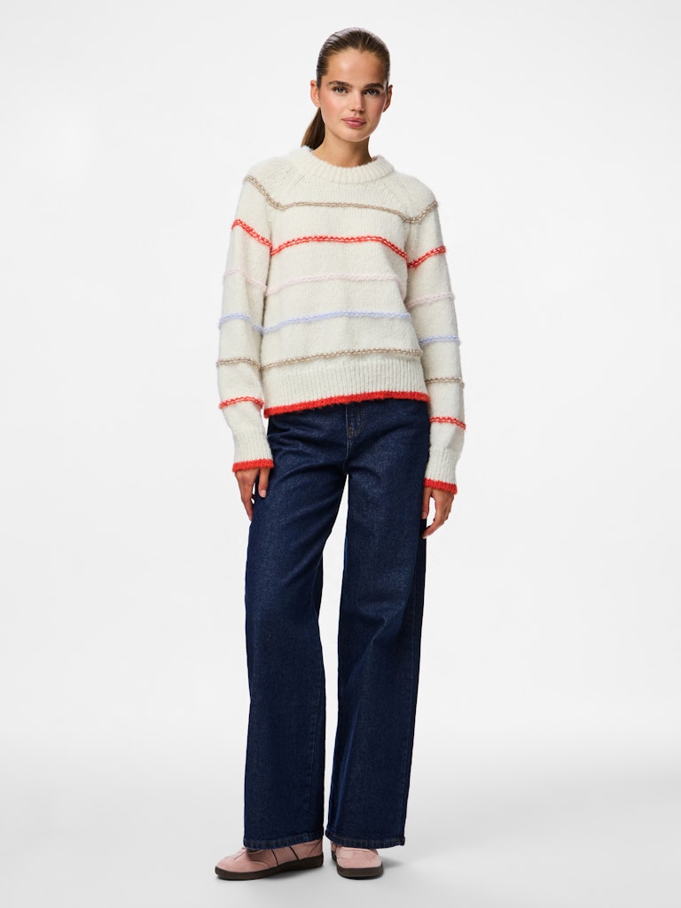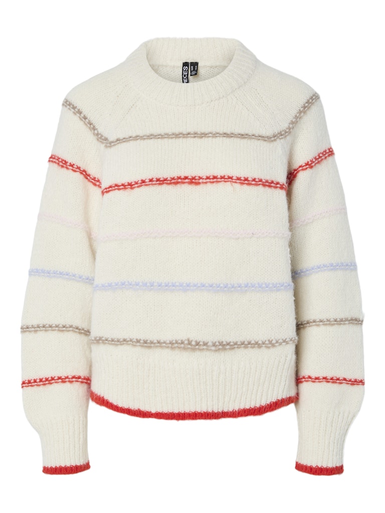 PIECES Multicolour Striped Knit Jumper in Cream