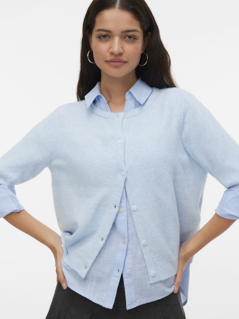 VERO MODA Short Sleeve Button Cardigan in Blue