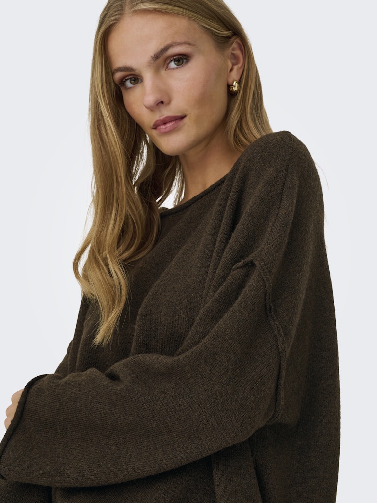 JDY Boat Neck Knit Jumper in Brown