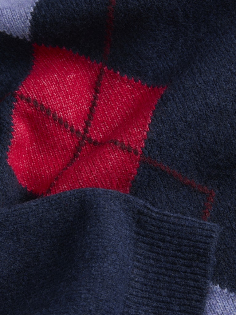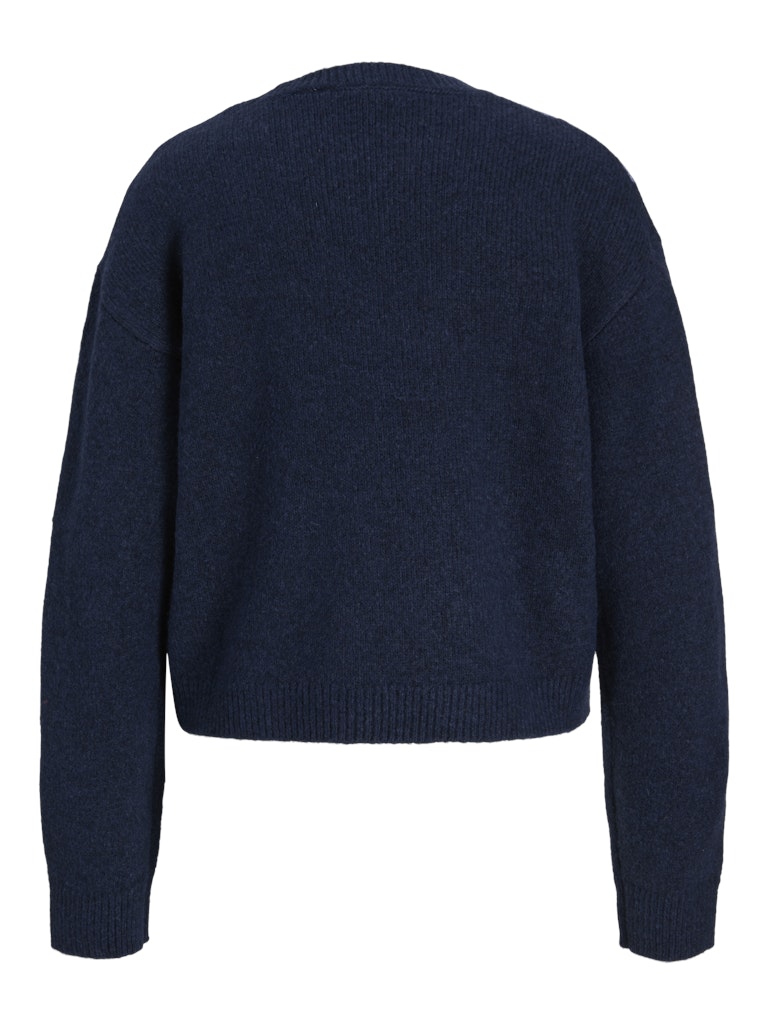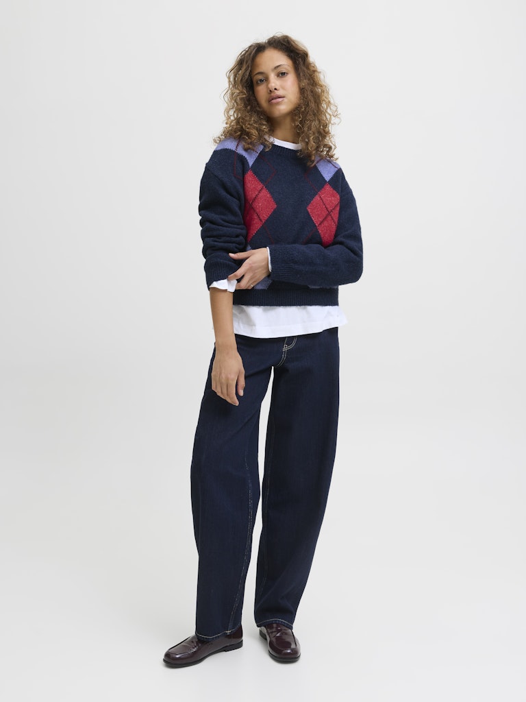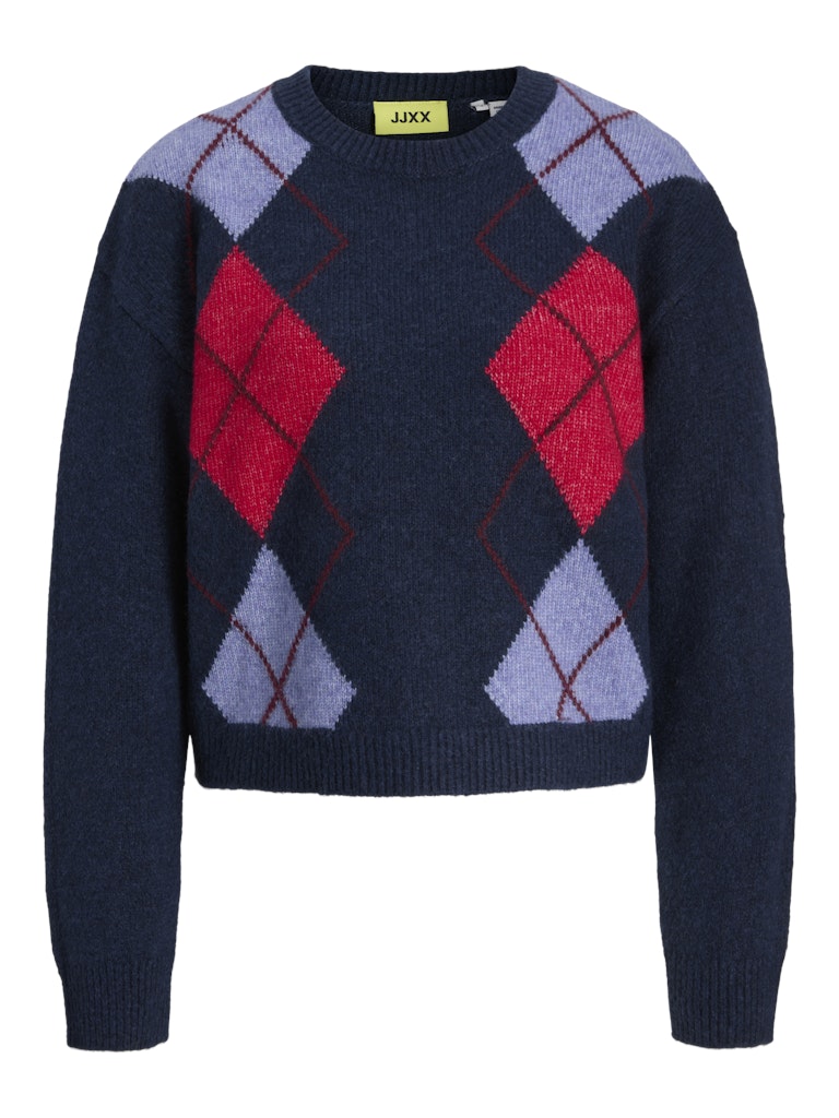 JJXX Knitted Crew Neck Argyle Jumper in Navy