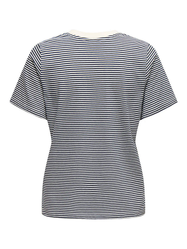 JDY Striped Embroidered Heart T-Shirt in Navy