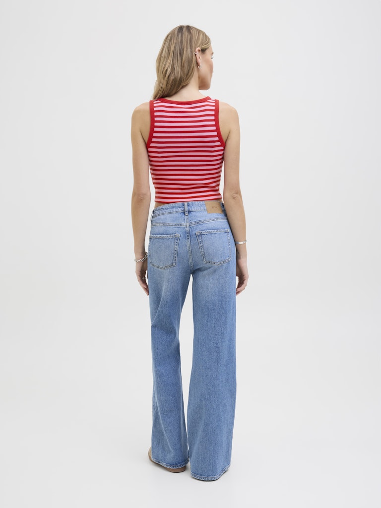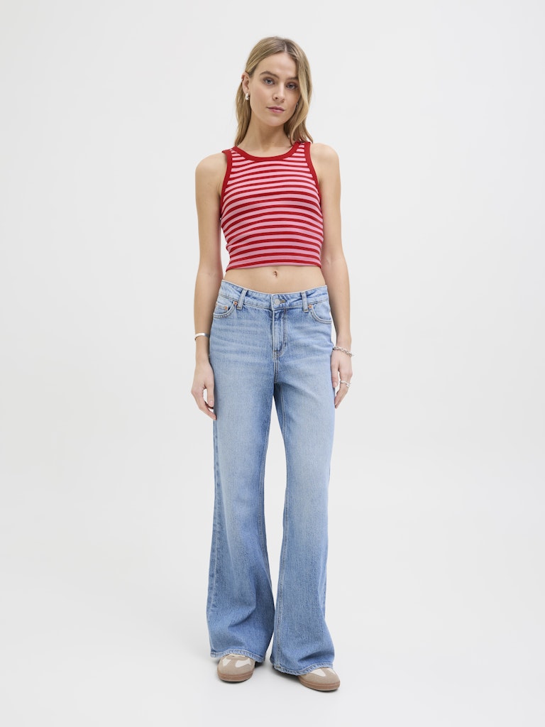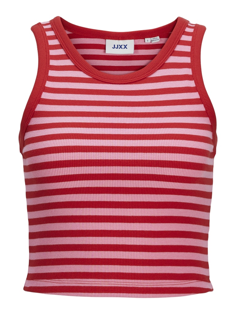 JJXX Striped Crop Rib Tank Top in Red