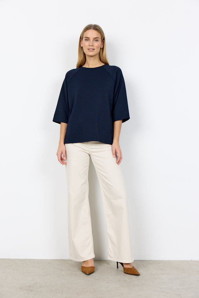 SOYACONCEPT 3/4 Sleeve Round Neck Sweatshirt in Navy