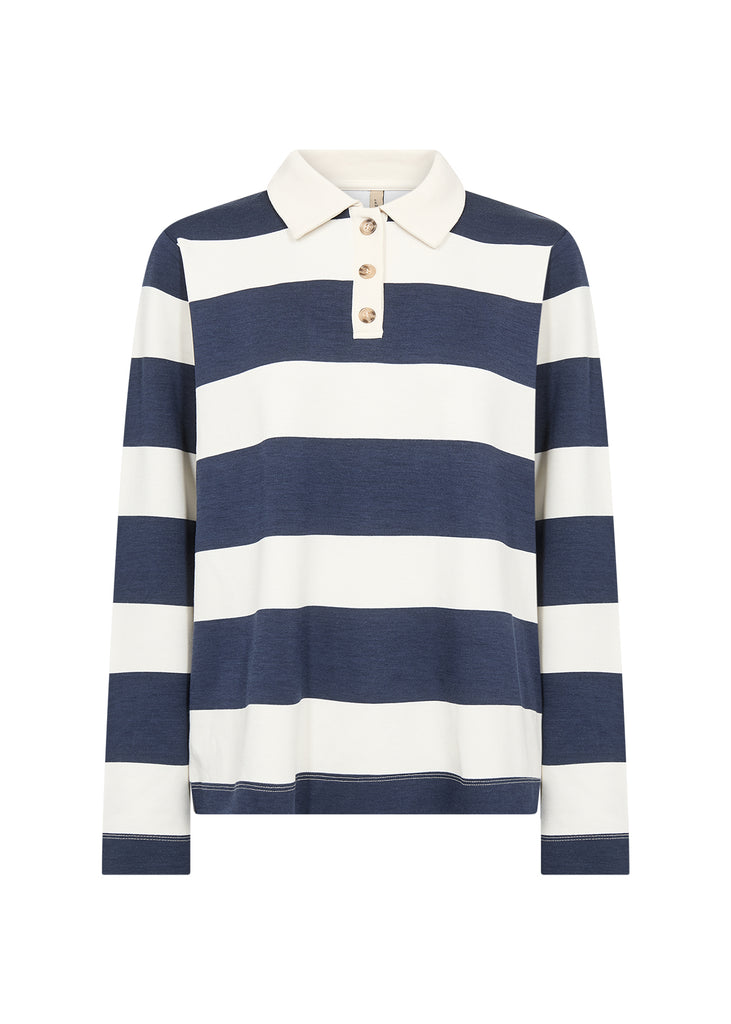 SOYACONCEPT Striped Long Sleeve Polo Top in Navy