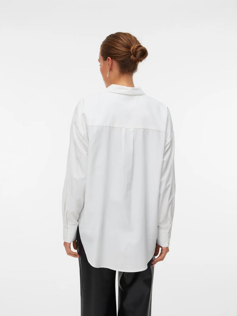 VERO MODA Oversized Rhinestone Detail Shirt in White