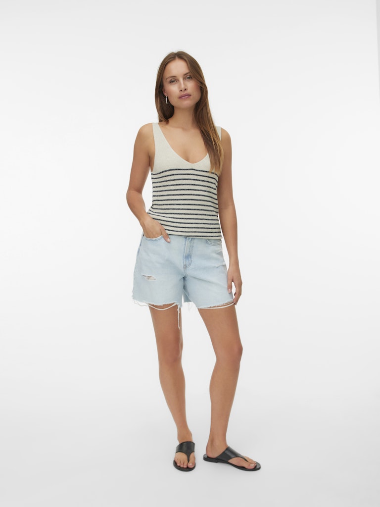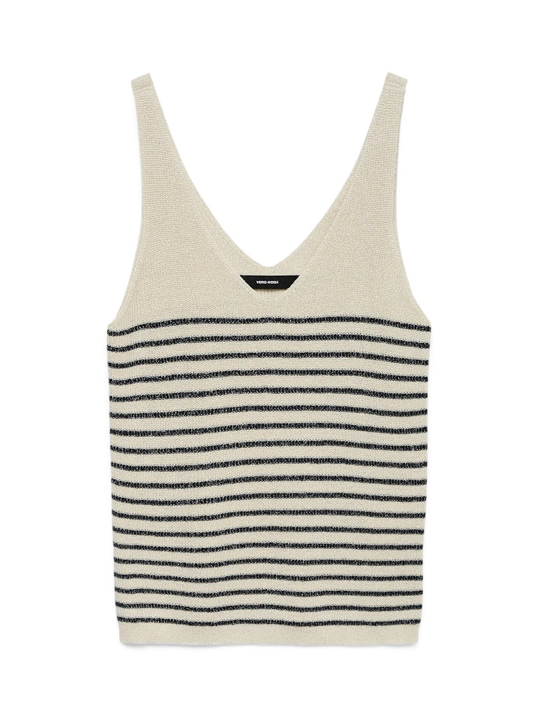 VERO MODA Striped Sleeveless Lurex V-Neck Top in Cream