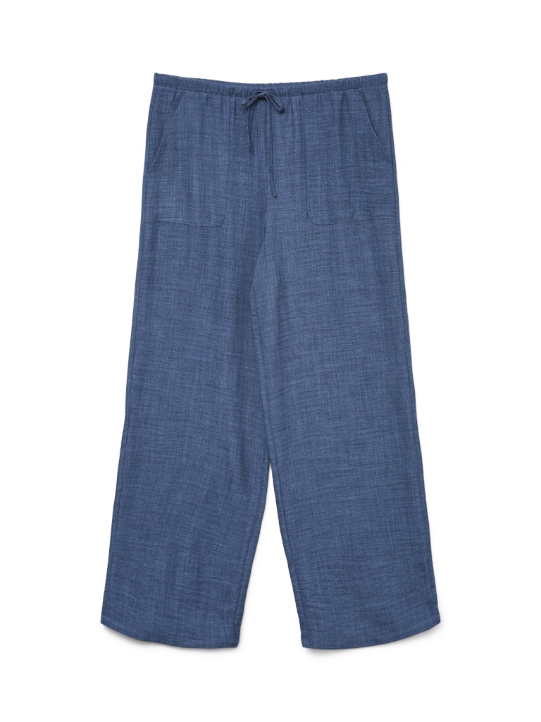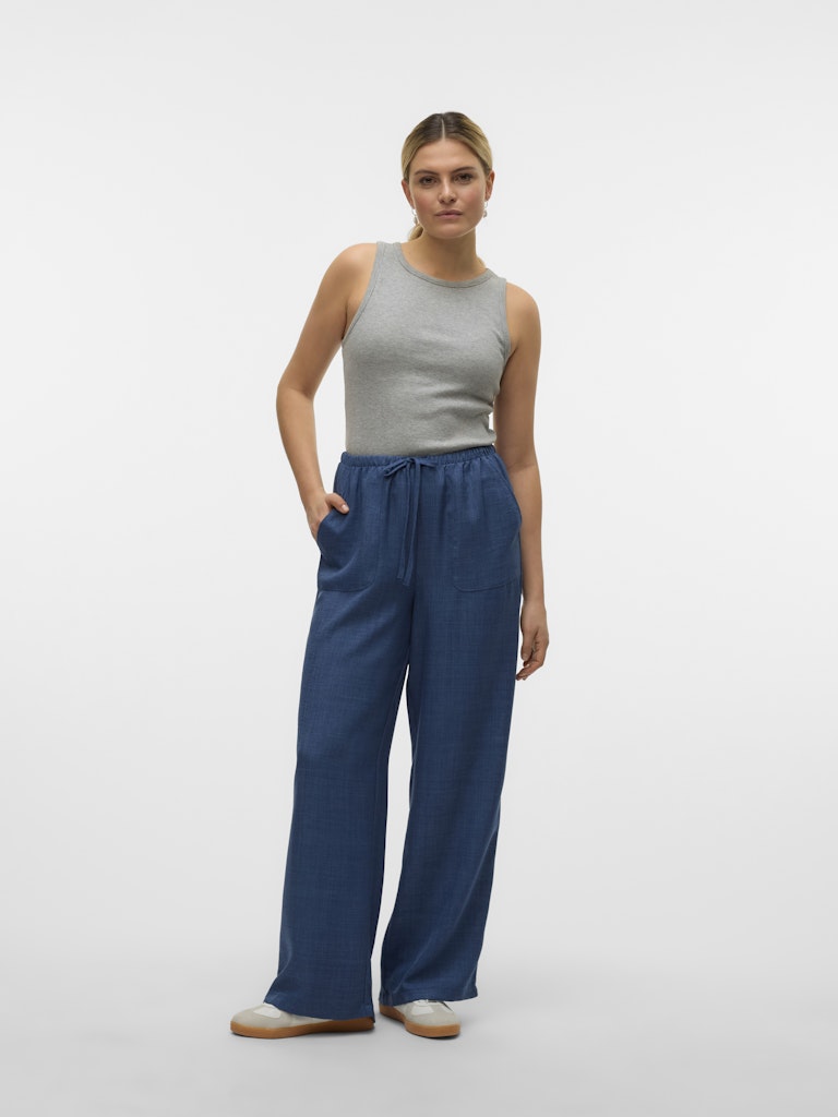VERO MODA High Waist Loose Fit Trousers in Denim Blue
