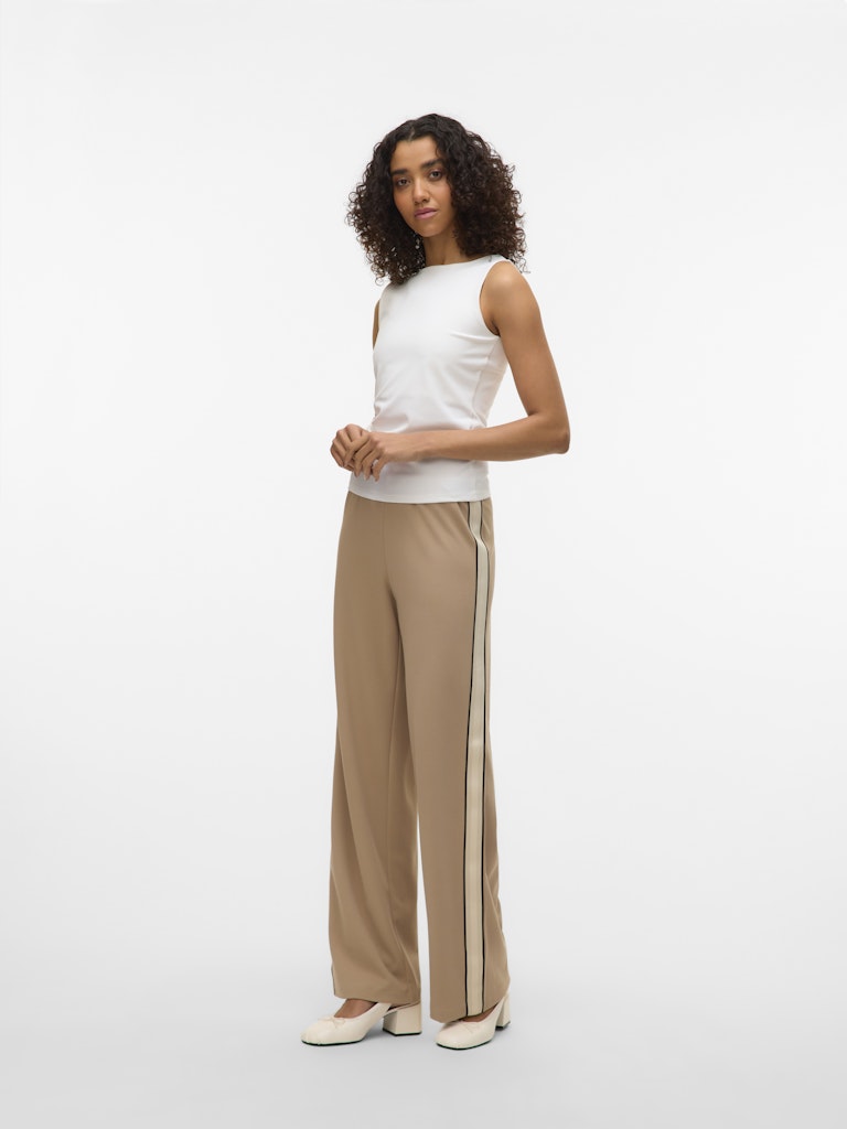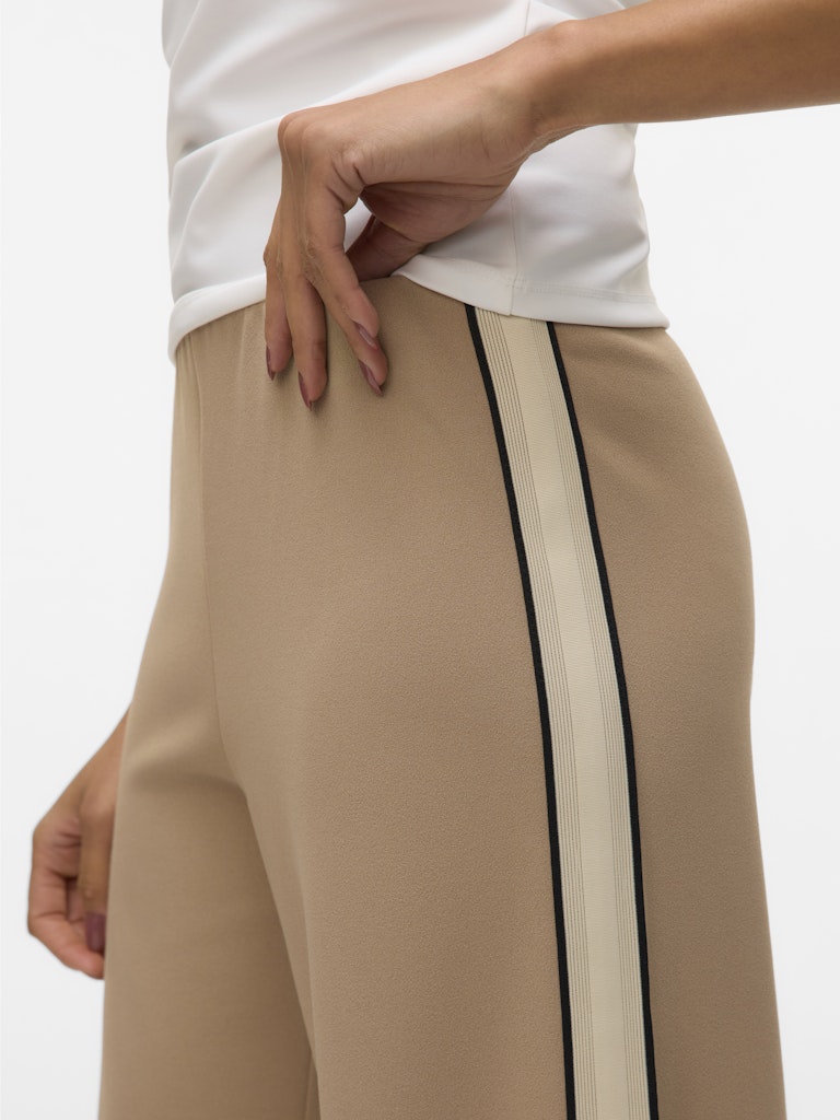 VERO MODA Wide Leg Panel Detail Trousers in Tan