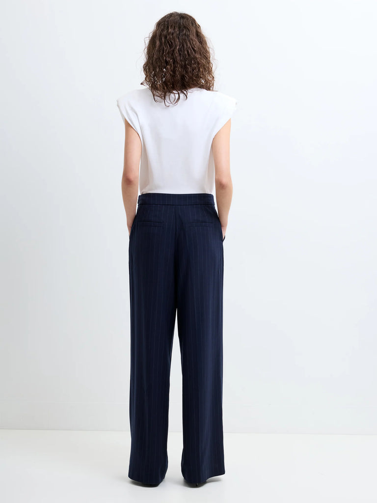 French Connection Alia Pinstripe Button Detail Wide Leg Trousers in Navy