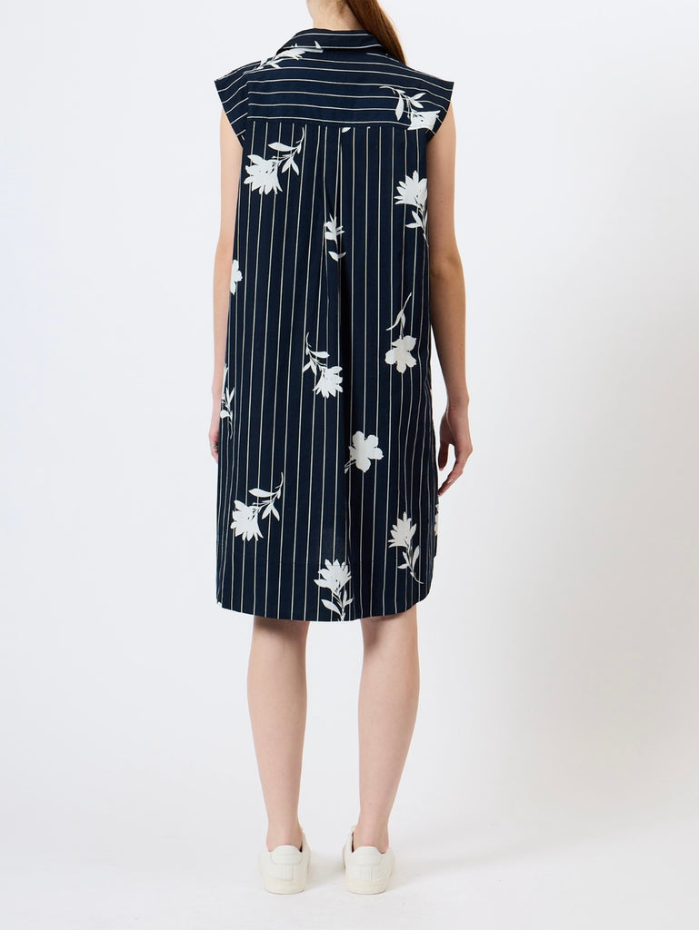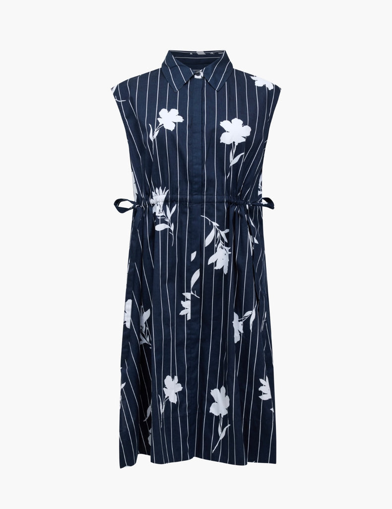 French Connection Cambria Cotton Sleeveless Drawstring Dress in Navy