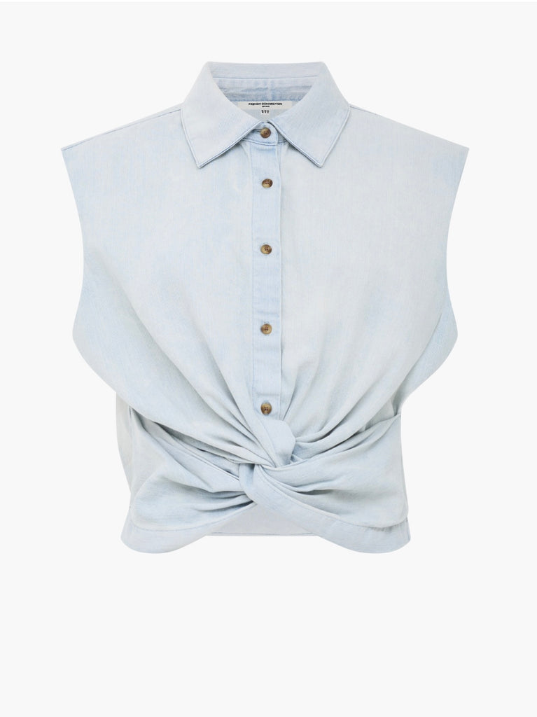 French Connection Chess Denim Shirt in Light Blue Denim