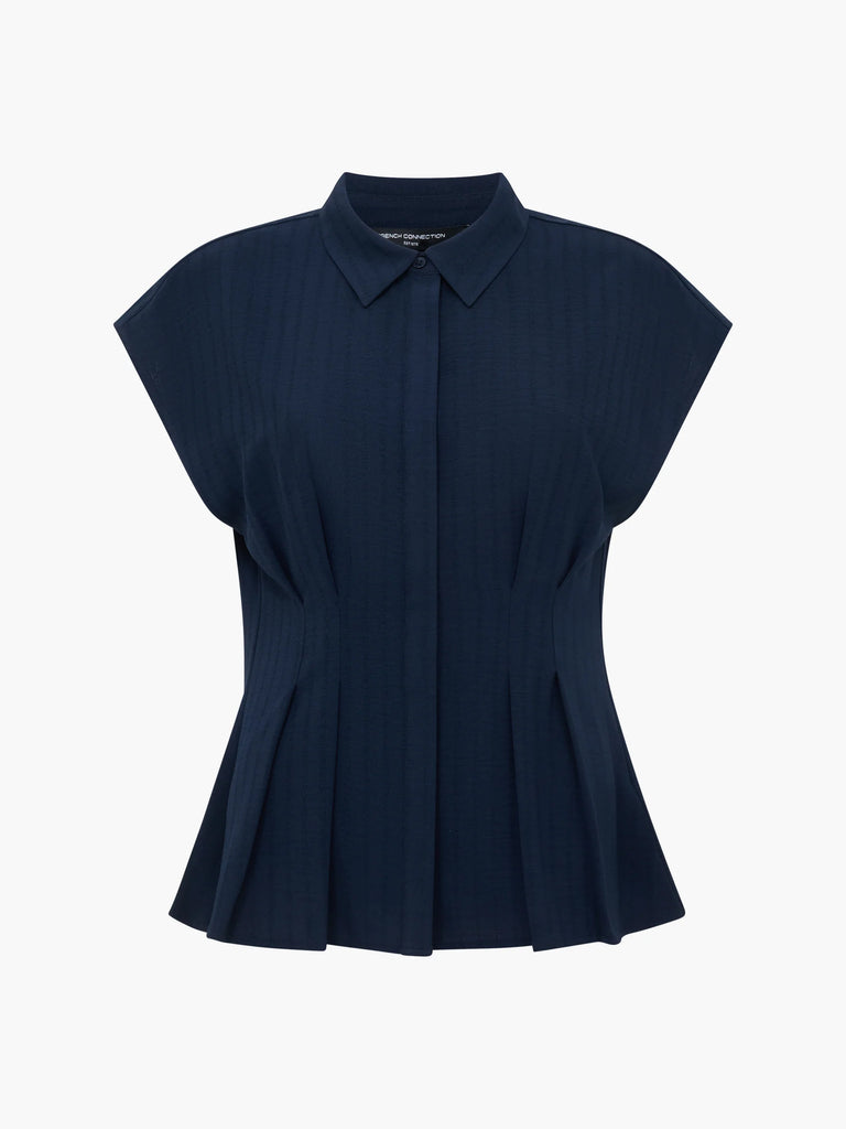 French Connection Codie Pleated Button Down Peplum Top in Navy
