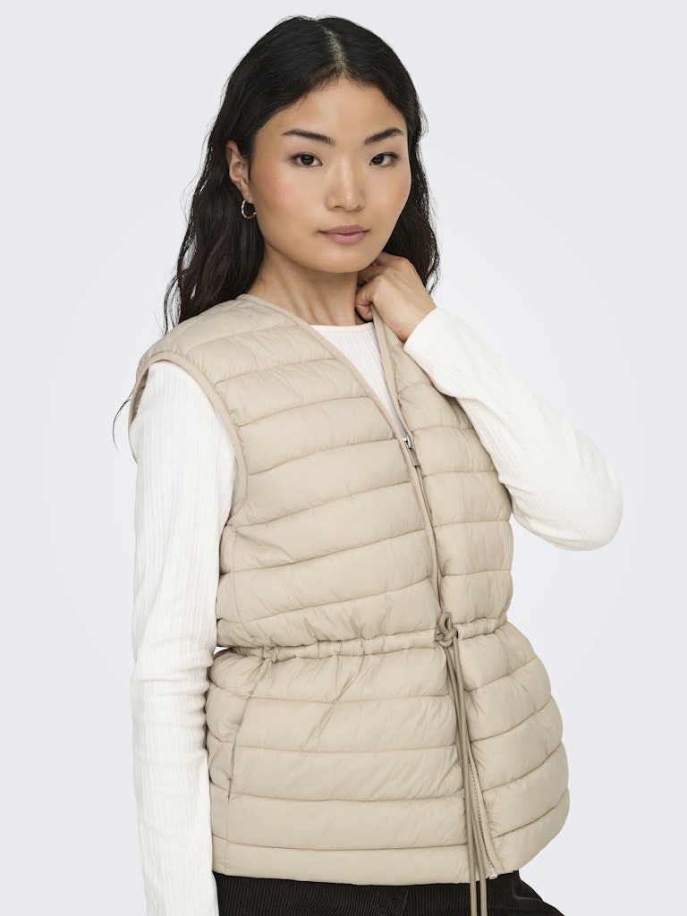 JDY Quilted Tie Gilet in Beige