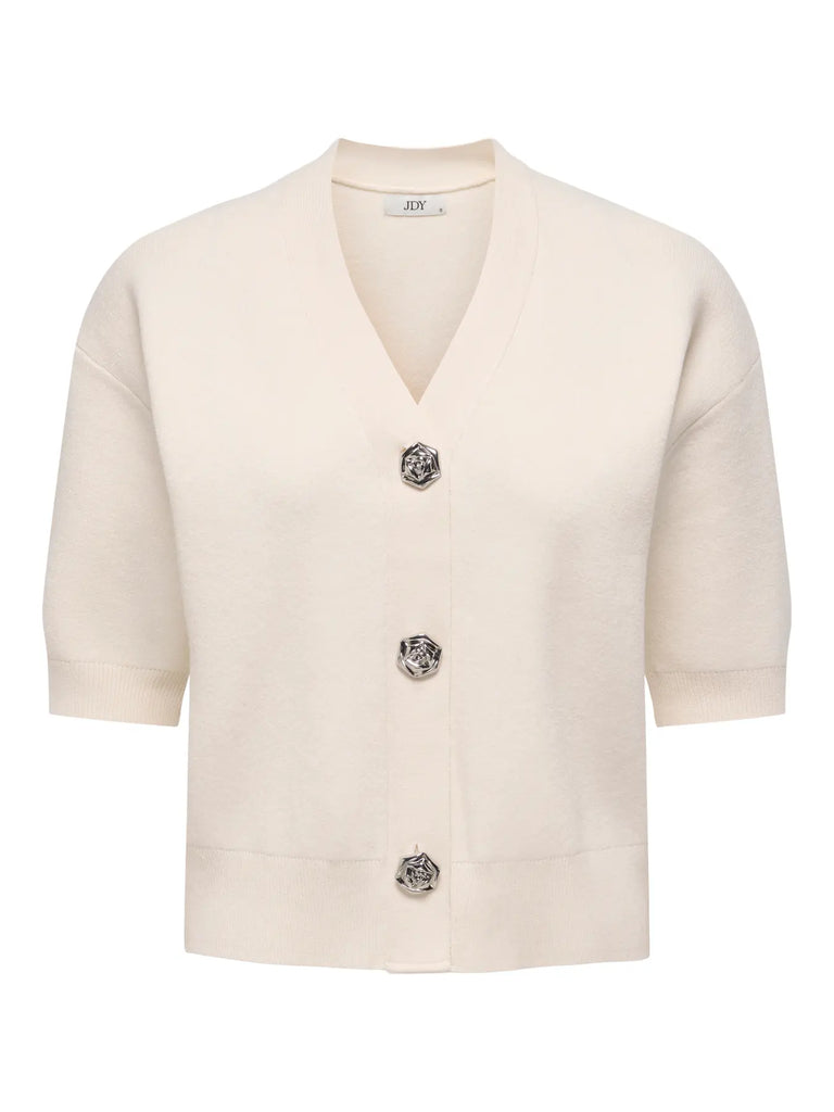 JDY Short Sleeve V-Neck Button Cardigan in Cream