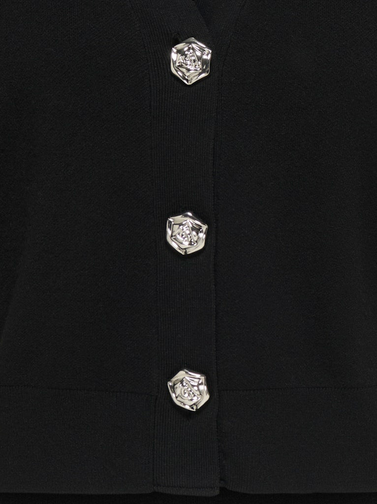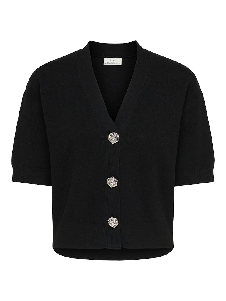 JDY Short Sleeve V-Neck Button Cardigan in Black