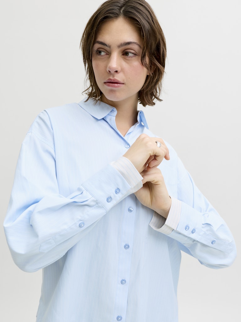 JJXX Striped Double Hem Poplin Shirt in Blue