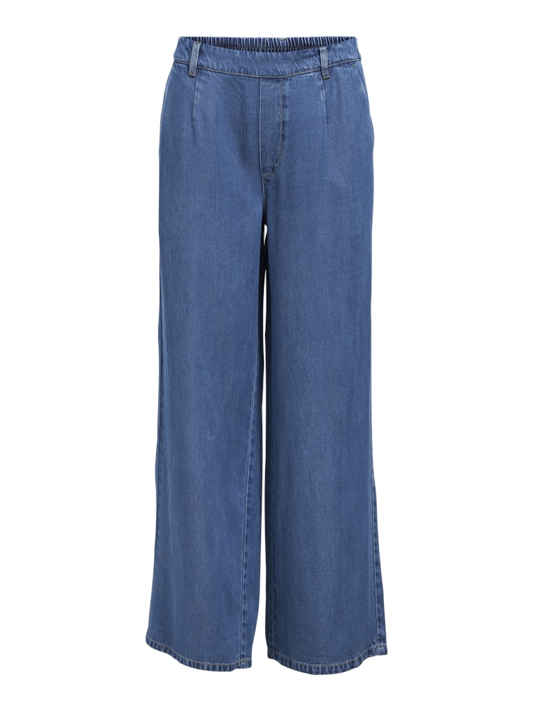 OBJECT Wide Leg Loose Fit Trousers in Medium Blue