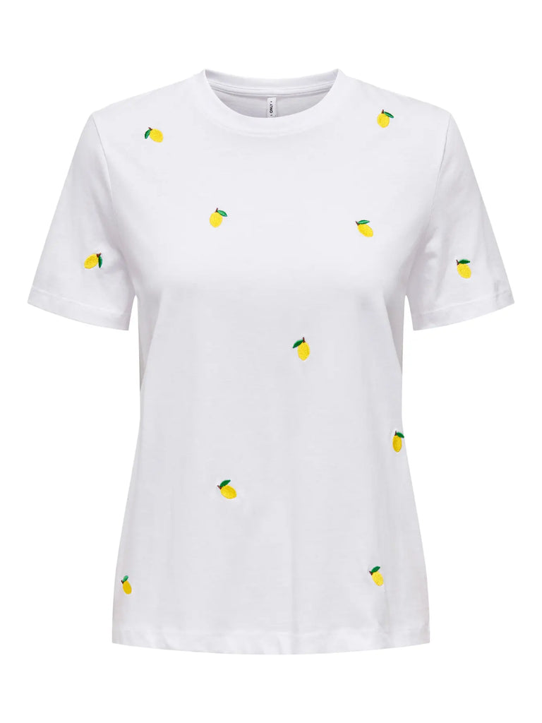 ONLY Embroidered Lemon T-Shirt in White
