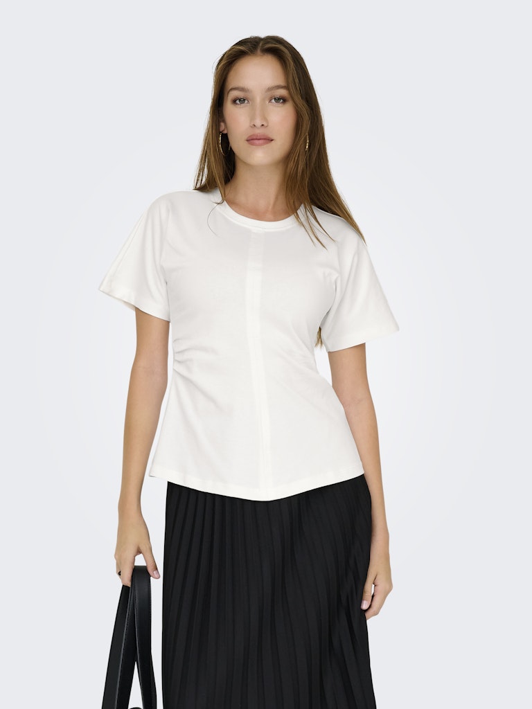 ONLY Ruched Detail T-Shirt in Cream