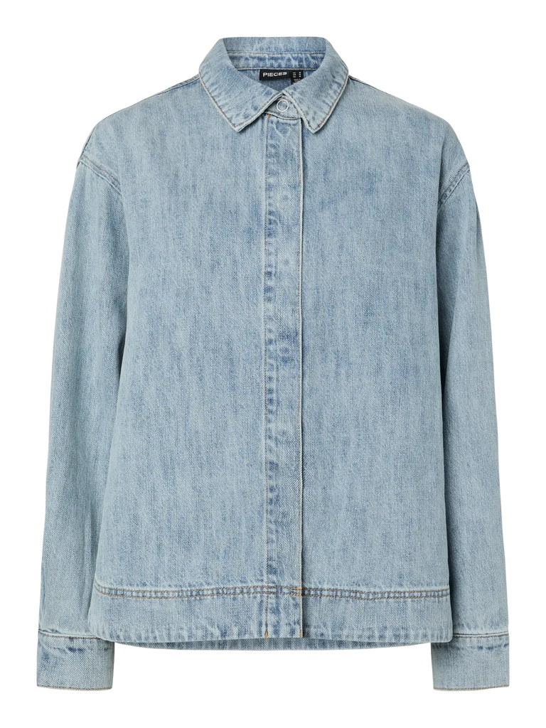 PIECES Denim Shirt in Light Blue