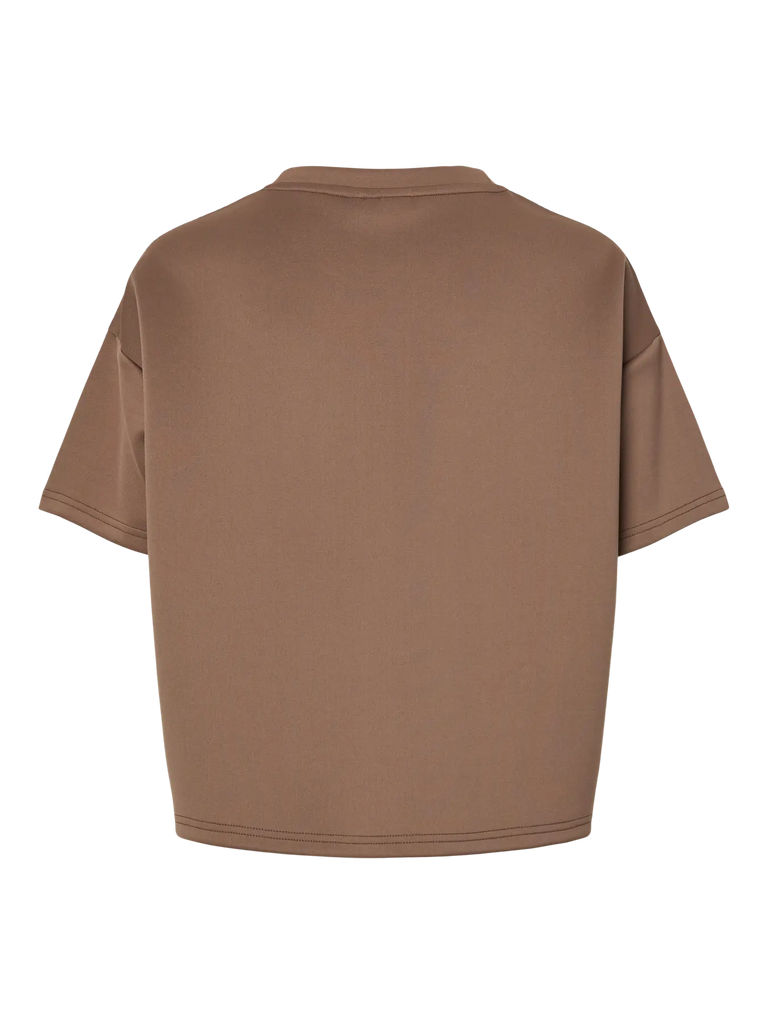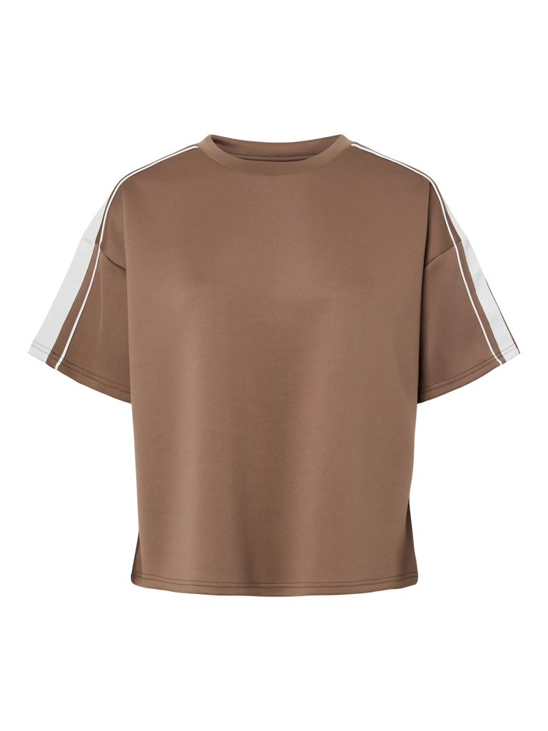 PIECES Oversized Side Stripe Short Sleeve Top in Brown