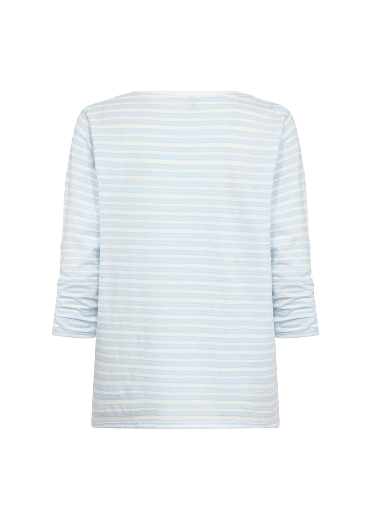 SOYACONCEPT Striped 3/4 Ruched Sleeve Top in Blue