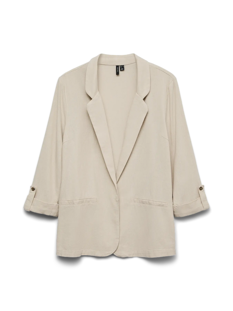 VERO MODA 3/4 Sleeve Linen Blend Blazer in Beige