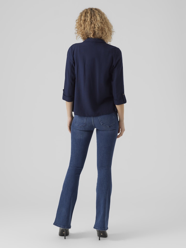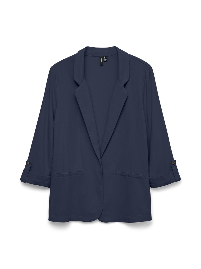 VERO MODA 3/4 Sleeve Linen Blend Blazer in Navy