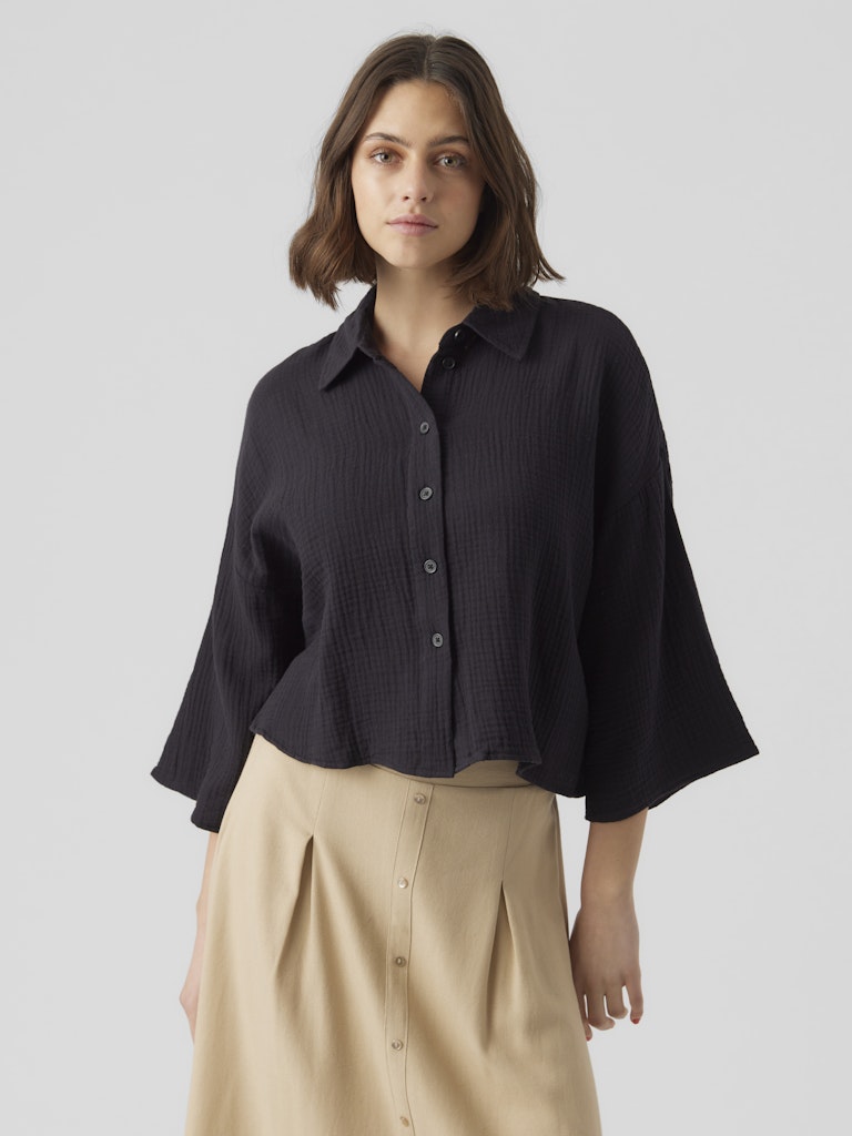 VERO MODA Cropped 3/4 Sleeve Cotton Shirt in Black