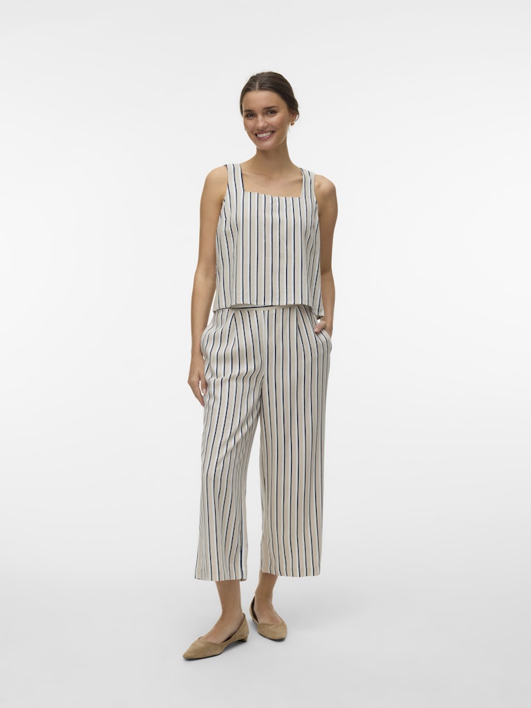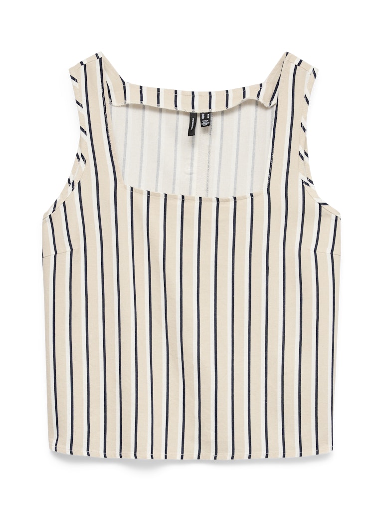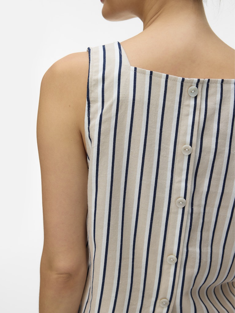 VERO MODA Striped Sleeveless Linen Blend Top in Beige