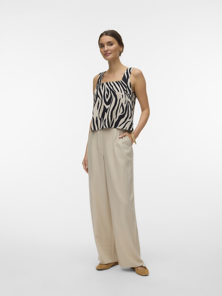 VERO MODA Zebra Print Sleeveless Linen Blend Top in Beige