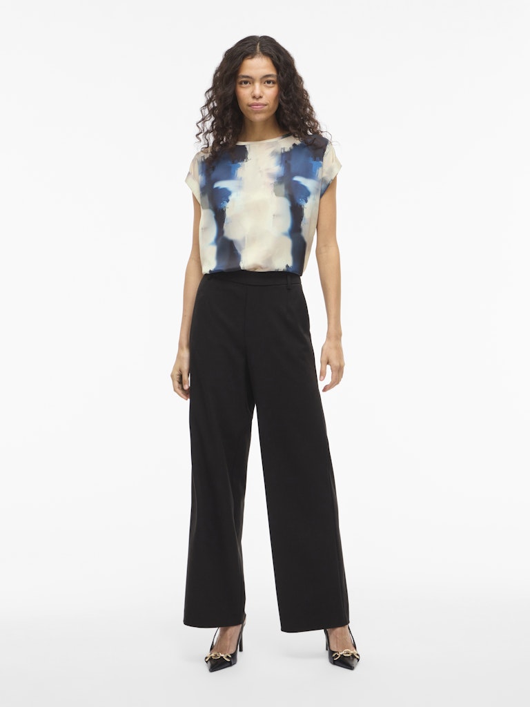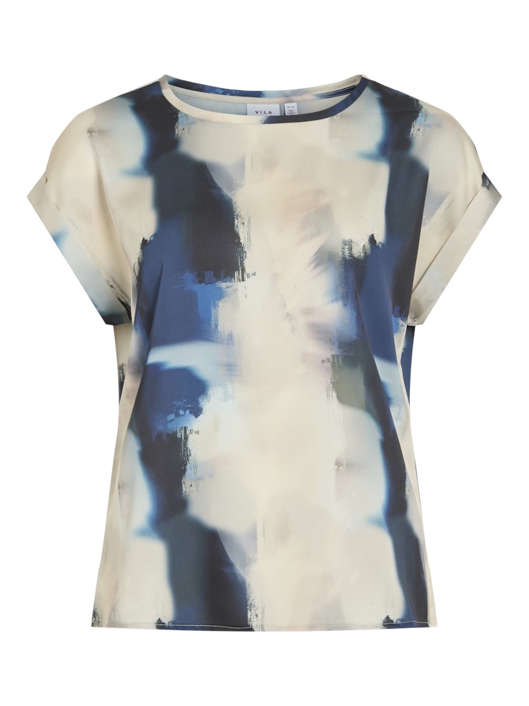 VILA Tie Dye Short Sleeve Satin Look Top in Beige